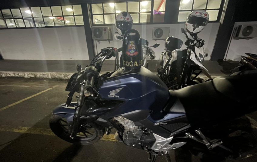 Com o suspeito custodiado, os policiais consultaram o COPOM e constataram que a motocicleta havia sido roubada instantes antes.