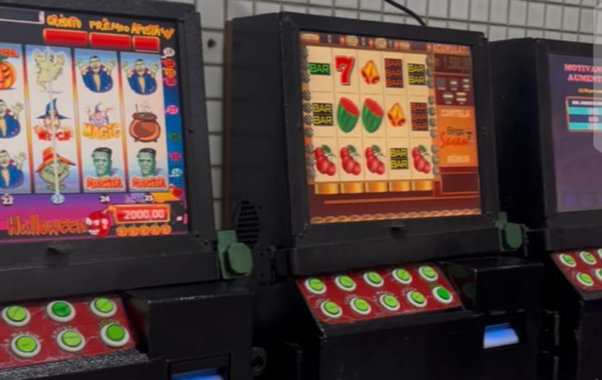 Na primeira ocorrência, foram encontradas seis máquinas em funcionamento em um estabelecimento comercial. No momento da fiscalização não havia jogadores no local, e o proprietário foi identificado e encaminhado para registro da ocorrência.