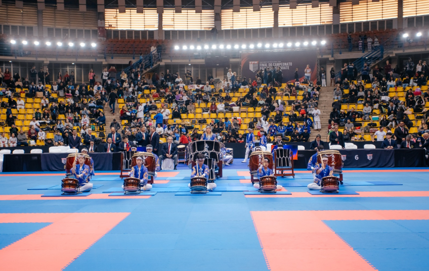 TAIKÔ – A abertura das Finais do Campeonato Paulista de Karatê ficou por conta da apresentação de Taikô, tradicional apresentação musical envolvendo tambores. O taiko tem raízes históricas que remontam a 558 d.C. , sendo usado para comunicação, em cerimônias religiosas, festivais, guerras e no teatro.