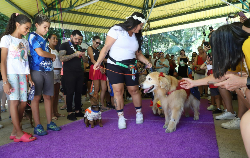 Os pets entraram no clima da folia na manhã deste sábado (1º) no Parque Celso Daniel. Em sua terceira edição, o Blocão, o carnaval dos pets, reuniu 350 cães e 450 pessoas. O evento foi organizado pelo Departamento de Proteção e Bem-Estar Animal, vinculado à Secretaria de Saúde do município.