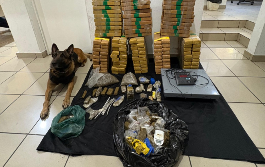 Nesta sexta-feira (1º), o cão Ice, do Choque da Polícia Militar, localizou 170 quilos de maconha que estavam escondidos em uma casa na viela Beco do Berçário, zona oeste da capital.