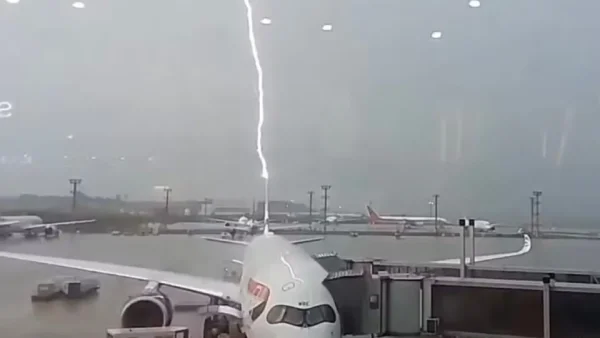 Um avião modelo Airbus A350-1000 da companhia British Airways foi atingido por um raio enquanto estava estacionado no pátio do Aeroporto Internacional de...