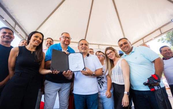 Prefeito Marcelo Lima assinou ordem de serviço neste domingo para implantação de grama sintética, drenagem, iluminação de LED, arquibancada e novos equipamentos de...