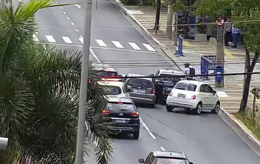 Eram cerca de 13h, quando a viatura da PM deparou-se com o Honda FIT, na Rua Felipe Camarão, no Bairro Prosperidade, mas o veículo conseguiu fugir e foi sentido Avenida Goiás, onde chegou a colidir com alguns outros carros. Foi então, que a viatura da PM recebeu apoio da GCM e encontraram o Honda FIT, na Avenida Conselheiro Antônio Prado.