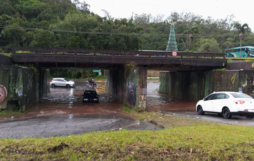 Pontos de alagamento parcial também foram registrados na cidade, mas sem interrupção do fluxo de veículos.