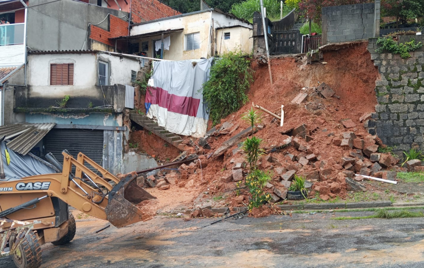 Em dois dias, cidade registrou quatro deslizamentos de terra, sem vítimas; prefeito Guto Volpi acompanha trabalho das equipes