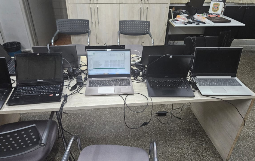 No momento do flagrante, os golpistas estavam em ação, então deixaram os notebooks ligados, o que permitiu a identificação de planilhas com nomes e dados pessoais das vítimas, bem como informações sobre as contas bancárias.