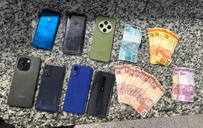 No local indicado, foram encontrados outros seis celulares, todos bloqueados e danificados, o que impossibilitou a consulta de IMEI, srndo todos apreendidos: