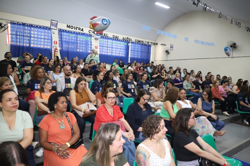 Quem prestigiou o evento, além de participar das dinâmicas em grupo, conferiu ainda a Mostra das Ações Complementares 2024, com banners e materiais produzidos pelos alunos e as equipes educadoras.