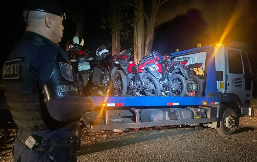 A equipe realizava rondas quando se deparou com motociclistas praticando manobras irregulares pelo local. Ao perceberem a proximidade das viaturas, os condutores buscaram fuga em direção a uma área de vegetação. Em varredura no entorno, os guardas localizaram as motocicletas ocultadas no mato, embora os responsáveis não tenham sido encontrados.