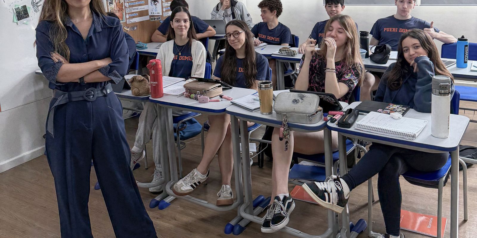 A professora Cintia Etsuko Yamashita, coordenadora pedagógica da Escola Bilíngue Pueri Domus, da Aclimação, em São Paulo, dá dicas aos estudantes – Foto Cintia Etsuko Yamashita/Arquivo pessoal