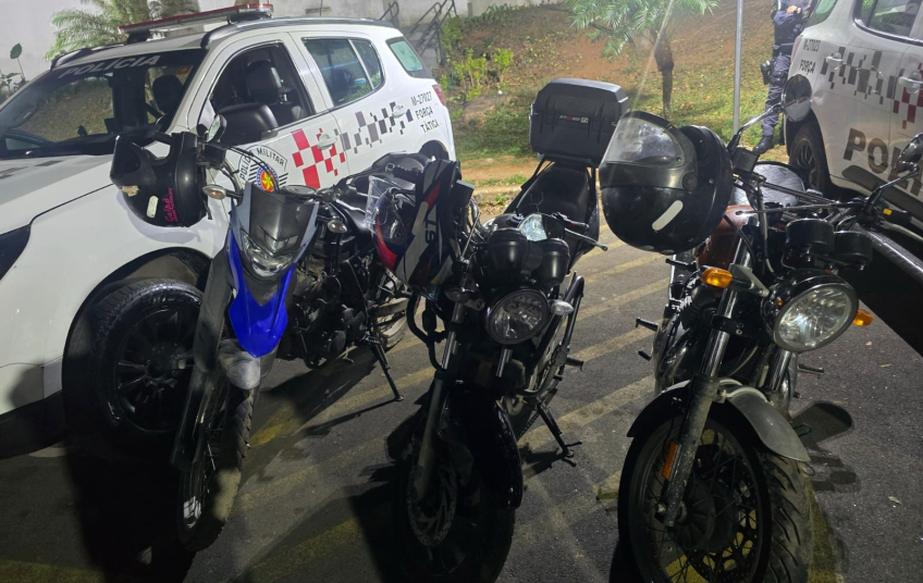 No local, foram encontradas três motocicletas com registro de roubo, além de diversos objetos relacionados às vítimas. Durante averiguação em imóveis próximos, uma pessoa foi detida e outra conduzida para esclarecimentos.