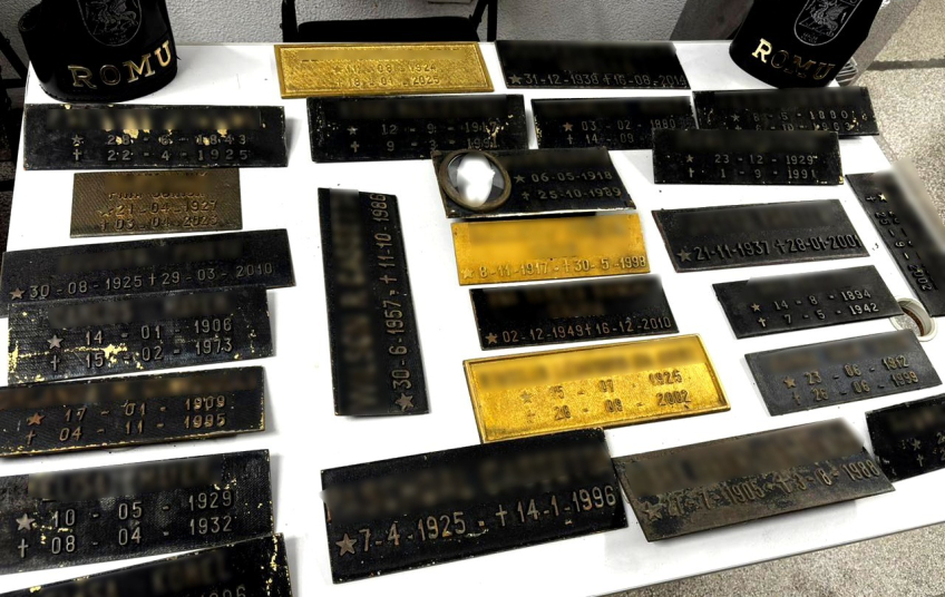 Na abordagem, os suspeitos demonstraram nervosismo e apresentaram respostas contraditórias. Ao abrir a caixa, os GCMs constataram que havia diversas placas de bronze utilizadas para identificação de túmulos.
