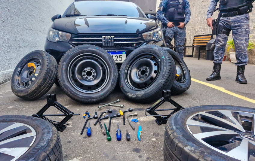 Ao perceberem a aproximação da viatura, os suspeitos tentaram fugir em um veículo Fiat Cronos, mas foram rapidamente interceptados após breve acompanhamento. Durante a abordagem, os GCMs encontraram seis rodas de veículos diversos (rodas e pneus) no interior do carro, sendo quatro estepes de veículos da marca Fiat, modelos Argo e Cronos, e duas rodas pertencentes a um Volkswagen Taos.