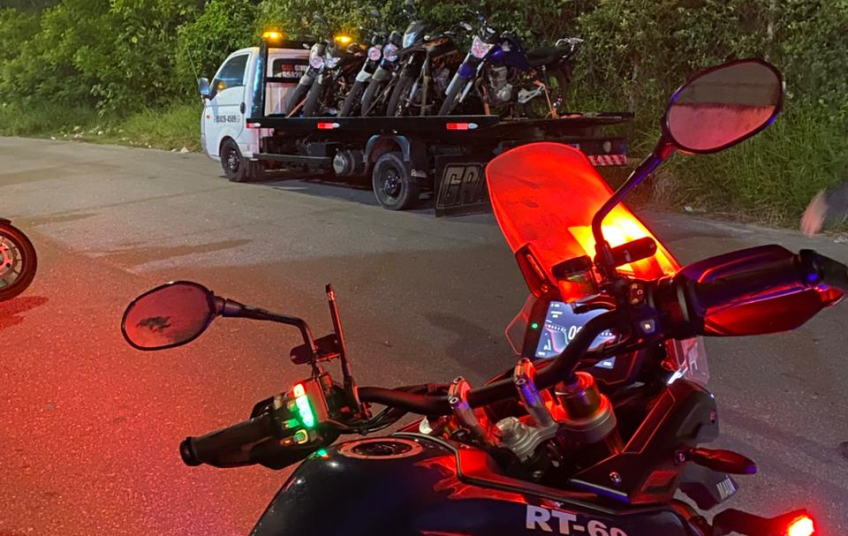 Ao chegarem ao local, os agentes constataram diversas infrações de trânsito. Diante das irregularidades, foram lavrados os Autos de Infração de Trânsito (AITs) correspondentes, e as motocicletas foram removidas ao pátio municipal.