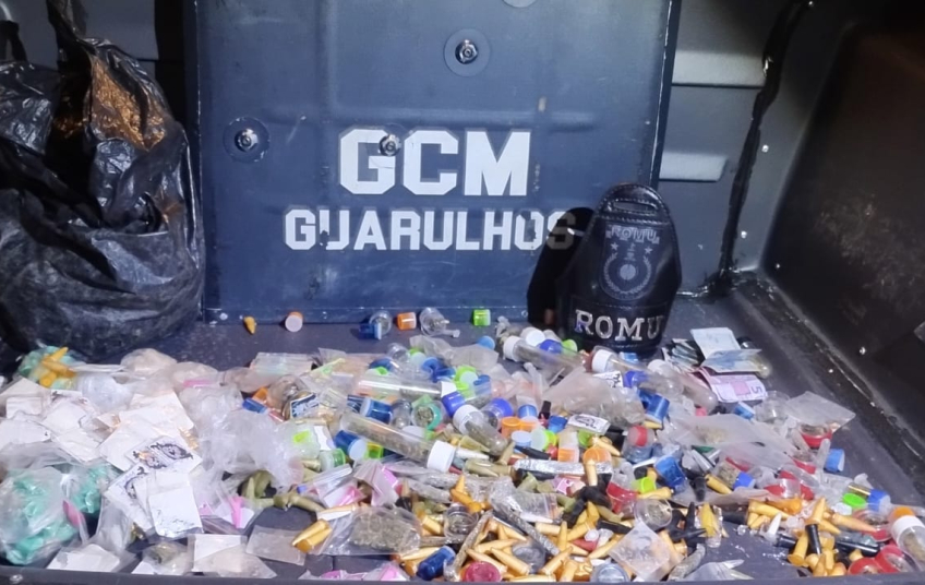 Agentes da Ronda Ostensiva (Romu) da Guarda Civil Municipal (GCM) de Guarulhos prenderam dois traficantes na noite de sexta-feira (13) no Jardim Toscana, durante policiamento preventivo municipal pela rua Tibério Iório.