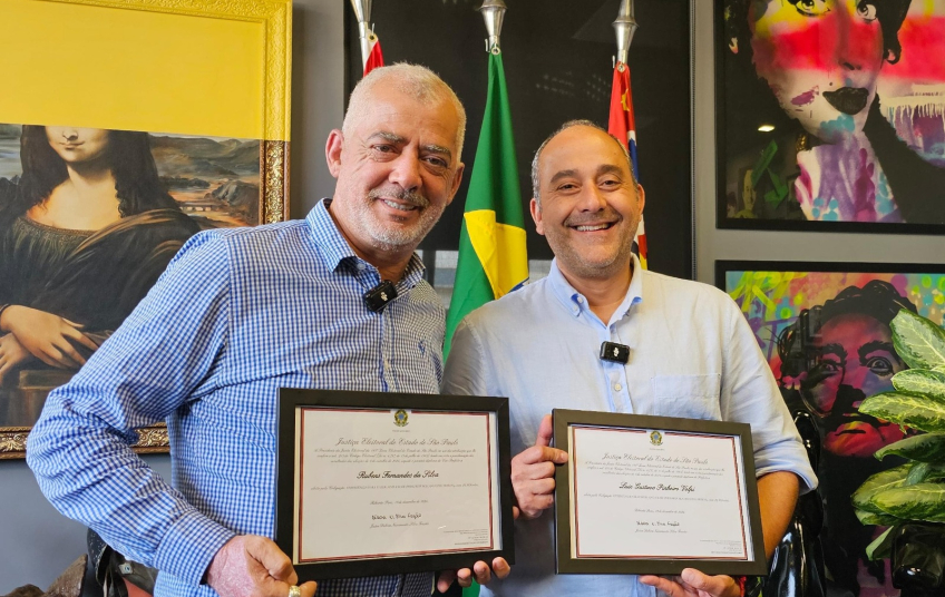 O prefeito reeleito de Ribeirão Pires, Guto Volpi (PL), e seu vice, Rubens Fernandes – Rubão (Republicanos), receberam nesta quinta-feira (19) diploma da Justiça Eleitoral, etapa final do processo que antecede a posse, no dia 1º de janeiro. Os 17 vereadores eleitos e seus suplentes também tiveram os certificados emitidos pela juíza Debora Nascimento Silva Frazã.