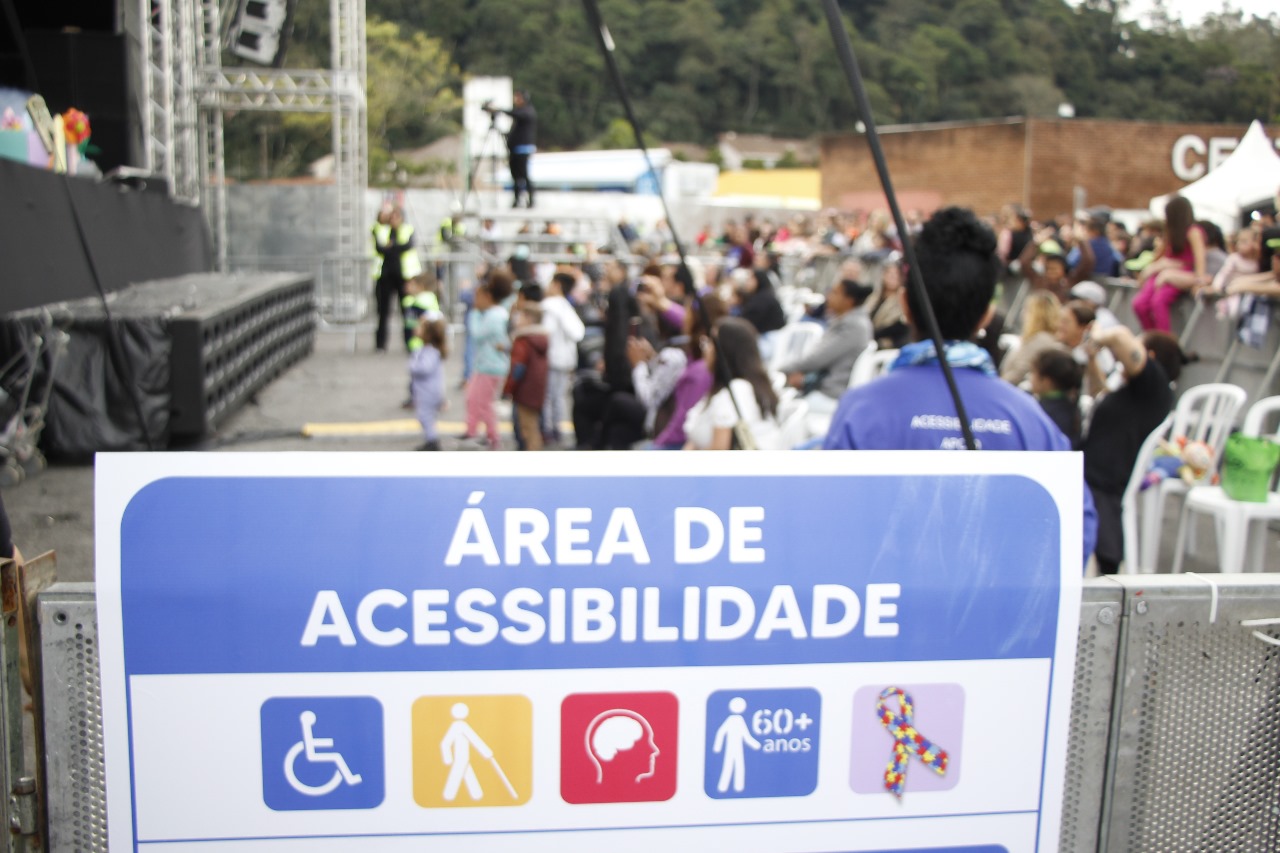 Buscando ofertar uma experiência única aos visitantes do 15º Festival do Chocolate, considerando suas peculiaridades, Ribeirão Pires mobiliza, mais uma vez, equipe especializada para o acolhimento e acompanhamento de pessoas com deficiência ou baixa mobilidade durante os nove dias da festa. São mais de 10 profissionais atuando em tempo integral, desde a recepção na entrada, até a área reservada próximo ao palco dos shows principais do evento.