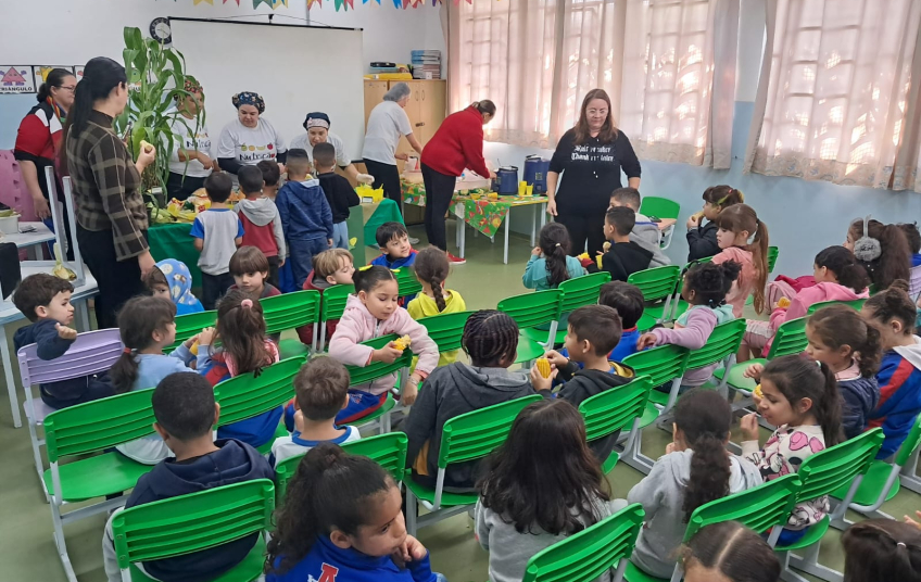 Atividade divertida com alunos de 5 e 6 anos ensina, de forma lúdica e saborosa, o ciclo do milho — do campo ao prato