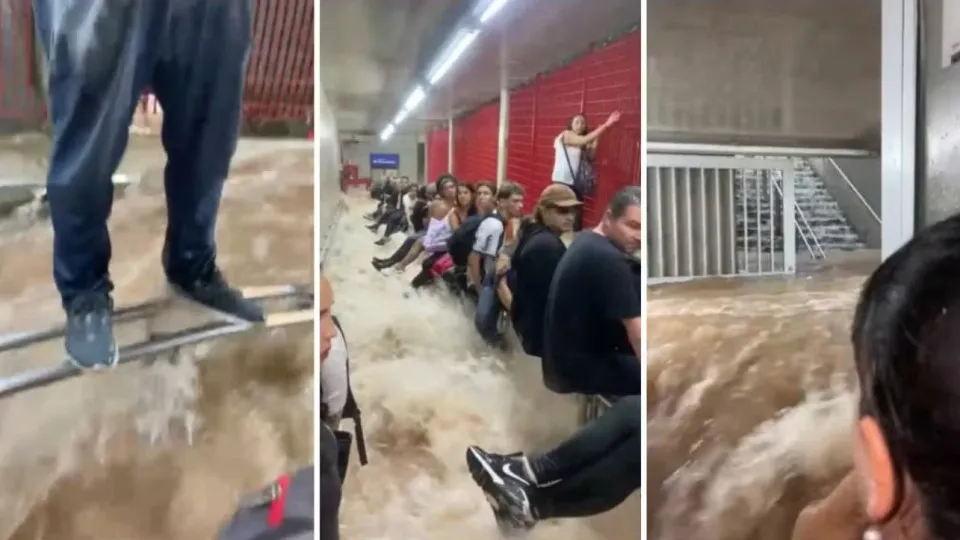 Passageiros enfrentaram uma situação de risco na estação Jardim São Paulo-Ayrton Senna, da Linha 1-Azul do Metrô, na tarde desta sexta-feira (24), após a forte tempestade que atingiu a capital paulista. A correnteza invadiu a estação, forçando pessoas a se apoiarem em corrimãos, grades e até na iluminação para evitar serem arrastadas. Vídeos feitos no local mostram cerca de 20 pessoas tentando se proteger.