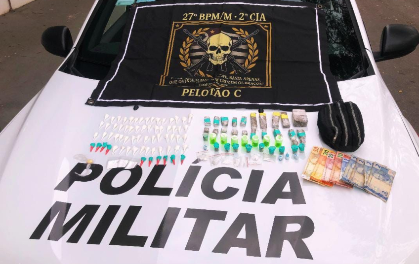 Durante a abordagem, foram localizadas porções de entorpecentes e dinheiro trocado, caracterizando a prática do crime de tráfico de drogas. O infrator recebeu voz de prisão e foi conduzido ao Distrito Policial, permanecendo à disposição da Justiça.