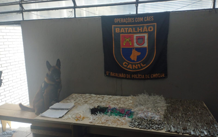POLÍCIA MILITAR APREENDE GRANDE QUANTIDADE DE DROGAS COM O APOIO DO CANIL