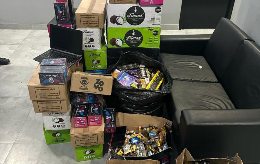 Com o apoio de outras viaturas os policiais realizaram buscas no interior do veículo e constataram que ele estava carregado com diversos pacotes de cigarros de marcas variadas, caixas de carvão para narguilé, essências e um notebook.