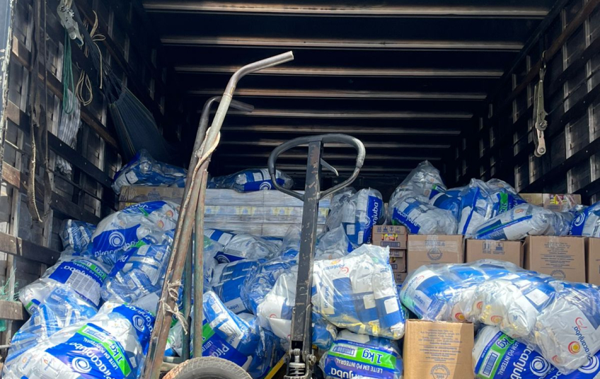 Com o apoio de outras viaturas, os policiais localizaram o caminhão no interior da comunidade. A maior parte da carga ainda estava dentro do baú, enquanto outra fração do material havia sido deixada espalhada sobre a vegetação rasteira ao redor do veículo.