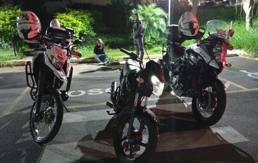 Durante patrulhamento, a equipe avistou uma motocicleta sem placa em situação suspeita. Ao perceber a aproximação da viatura, o condutor tentou fugir, dando início a um breve acompanhamento. A perseguição terminou na Rua Professor Licínio Carpinelli, quando o suspeito perdeu o controle do veículo e caiu.