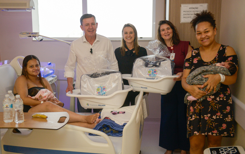 KIT – No total, foram adquiridos 1.500 kits de maternidade, destinados às mamães que ganham bebê no Hospital da Mulher. Eles são compostos por bolsa, banheira, toalha de banho com touca, trocador de fraldas, manta de microfibra, body manga longa, body manga curta, calça mijão, pano de boca, cueiros, sapato, luva, touca e macacão manga longa.