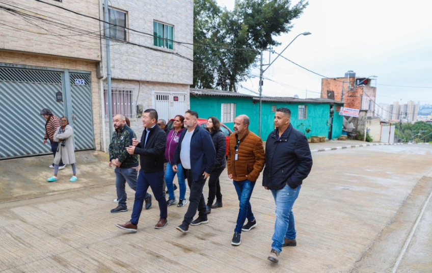 Acompanhado de moradores e da vice-prefeita Andréia Fontes, o prefeito de Diadema, Taka Yamauchi, entregou na manhã desta quinta-feira, 10/7, a pavimentação da Travessa Novo Horizonte, no Canhema.