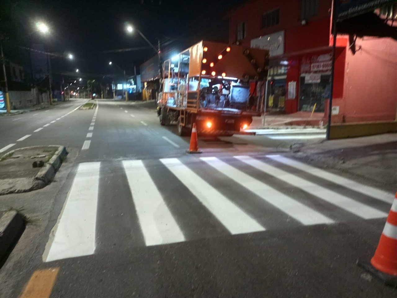 Na Avenida Francisco Monteiro, a equipe de mobilidade urbana realiza a revitalização das faixas de pedestres. A Avenida Ettore Turelli também recebeu faixas de pedestres e pista destinada à caminhada, além da instalação de placas indicativas.