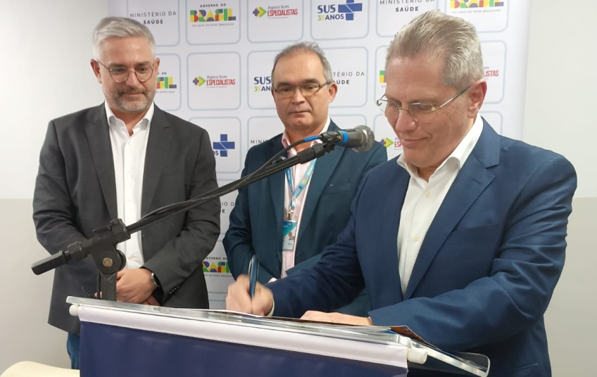 CONCRETIZAÇÃO – O secretário executivo do Ministério da Saúde, Alexandre Massuda, que representou o ministro da Saúde, Alexandre Padilha, lembrou que o contrato assinado nesta sexta inicia a concretização do anúncio de seleção dos projetos feito em julho deste ano. “Hoje nós estamos fazendo dois anúncios muito importantes: que é a ampliação da oferta de médicos especialistas e o fortalecimento da infraestrutura onde esses profissionais vão atuar”, completou.