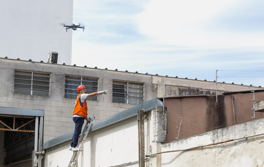 A Prefeitura de São Caetano do Sul realizou na tarde desta terça-feira (11/2) uma ação multisetorial de enfrentamento ao Aedes aegypti, mosquito transmissor da dengue, zika, chikungunya e outras arboviroses. Agentes do CCZ (Centro de Controle de Zoonoses), da Vigilância Sanitária, da GCM (Guarda Civil Municipal) e da Defesa Civil vistoriaram imóveis com o reforço de um drone para monitorar os endereços, alvos de denúncias da população.