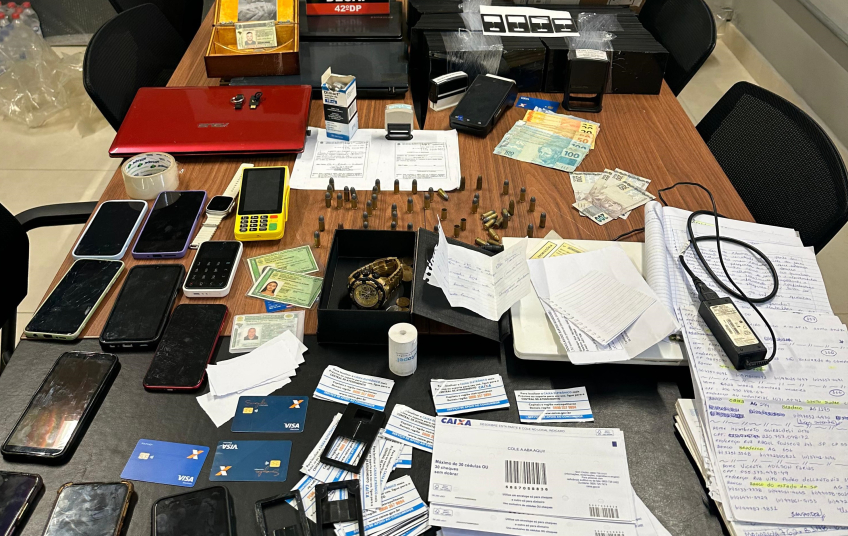 O caso está sendo registrado no 42º DP como associação criminosa, falsificação de documentos, posse ilegal de munição restrita, localização e apreensão de objeto e cumprimento de mandado de busca e apreensão.