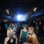 Presença de pin ups para fotos com o público e a galera dançando durante o evento