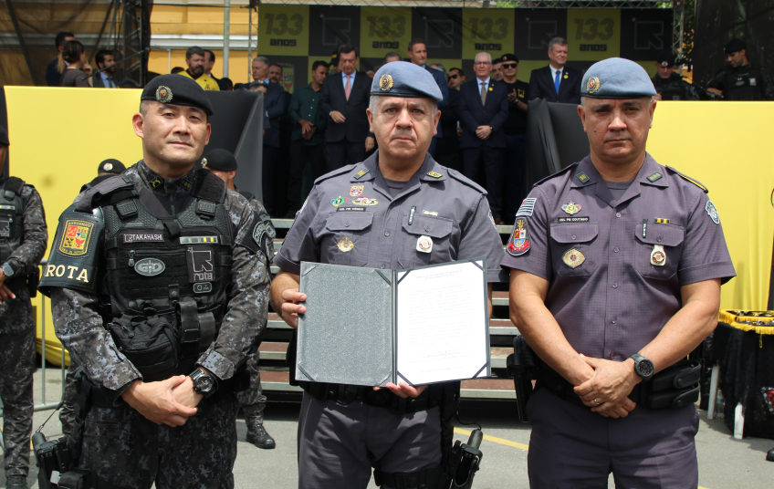 “Carreguem essa medalha com muito orgulho. Quem as recebe são pessoas vocacionadas, que estão acima da média. Os senhores estão construindo a história do amanhã dessa instituição que faz parte da história da República do Brasil e do Estado de São Paulo”, disse o secretário da Segurança Pública, Guilherme Derrite.