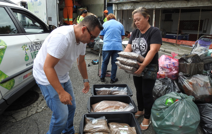 No caso do programa Moeda Verde, a cada cinco quilos de resíduos recicláveis, o morador leva para casa um quilo de alimento hortifrúti, como legumes e frutas, além de uma hortaliça de brinde.
