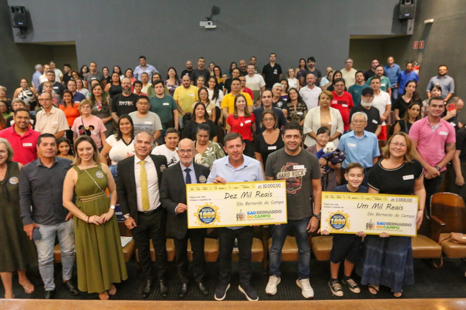 Em sequência a plano de combate à sonegação fiscal em estabelecimentos comerciais da cidade, a Prefeitura de São Bernardo, sob gestão de Orlando Morando, distribuiu nesta quarta-feira (24/4) mais R$ 100 mil a ganhadores do Programa Nota 1.000. O chefe do Executivo municipal participou da cerimônia de entrega de cheques simbólicos do projeto, idealizado pela Secretaria de Finanças, que, agora, chega ao marco de R$ 4 milhões em prêmios concedidos desde 2017, ano do pontapé inicial.