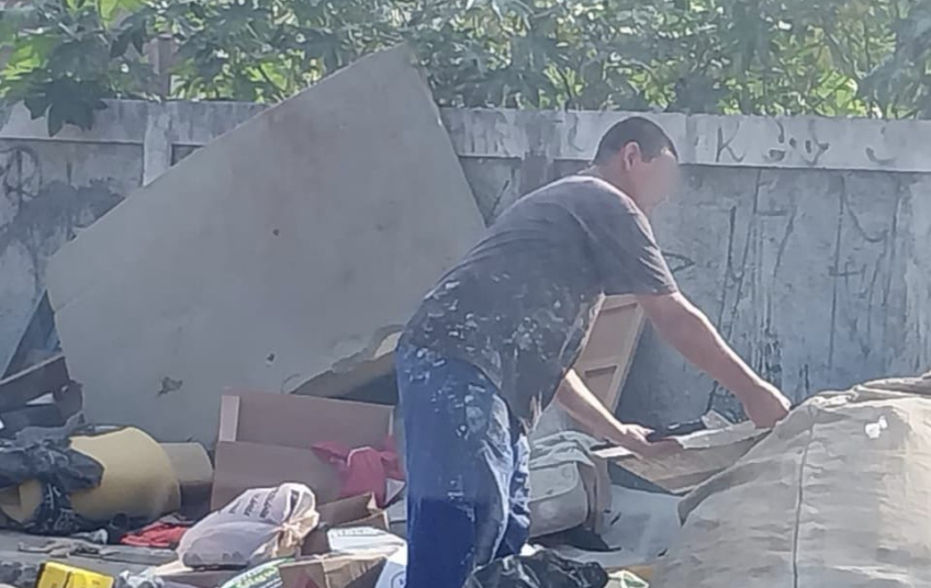 Semasa autua infrator por descarte irregular de resíduos em frente à Estação de Coleta Santo Alberto